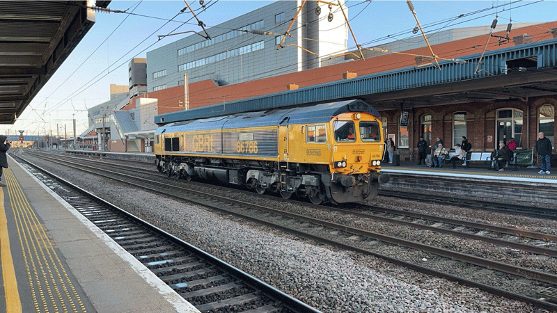 Our trip started with a 9:01 Northern service from Meadowhall to Doncaster. We arrived at platform 8 and immediately saw 66786 ‘Cambridge University Railway Club’ waiting at a danger signal on the up-fast line. It was operating as a light engine that day, without a train in tow. Luckily, we caught it clearing the track moments later.